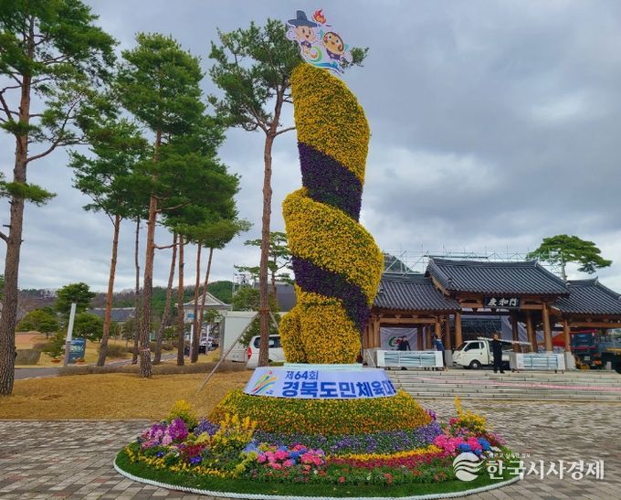 한국시사경제 경북취재본부 | 안동시는 제64회 경북도민체육대회의 성공적인 개최를 기원하고, 도민 화합과 도전 정신의 의미를 상징하기 위해 ‘성화’를 모티브로 한 ‘횃불 꽃조형물’을 설치했다고 밝혔다.