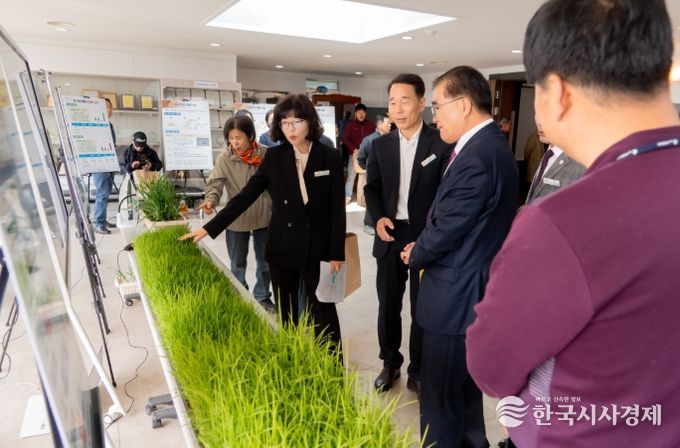 볍씨 소독 방법에 따른 발아율과 육묘상 성묘율 비교 시험 결과를 전시해 농업인들이 소독 효과를 직접 확인할 수 있도록 했으며, 드론·무논·건답 직파 등 재배 유형별 관리기술과 관·배수 요령도 함께 소개했다.