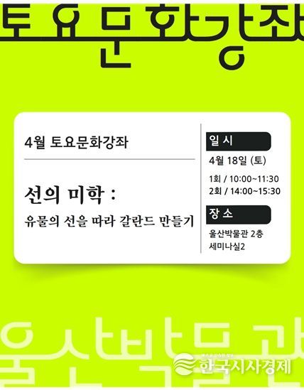 한국시사경제 울산취재본부 | 울산박물관은 오는 4월 18일 ‘2026년 토요문화강좌’ 두 번째 프로그램을 운영한다고 밝혔다.