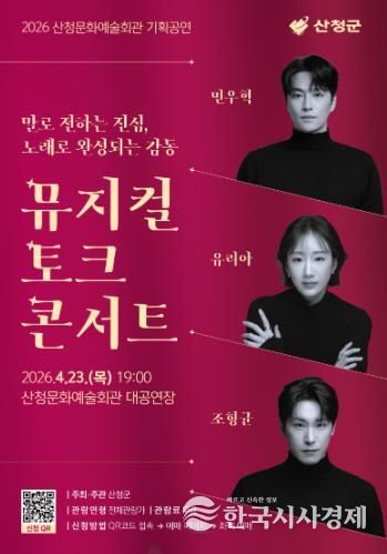 한국시사경제 권충현 기자 | 산청군은 오는 23일 문화예술회관 대공연장에서 ‘민우혁×유리아×조형균 뮤지컬 토크 콘서트’를 개최한다고 10일 밝혔다.