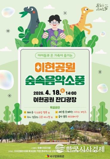 하현주 서구문화회관 관장은“화창한 봄날에 아이들의 상상력과 웃음꽃이 피어나는 이현공원에서 다채로운 공연 소풍을 즐기시길 바란다.”라고 전했다.