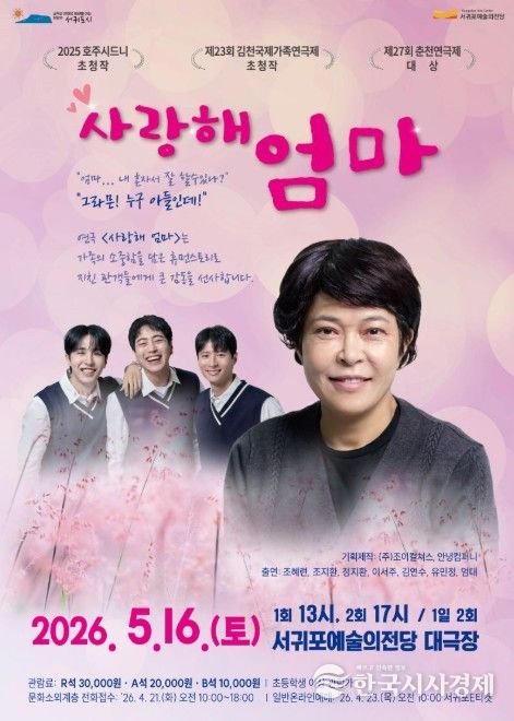 한국시사경제 노승선 기자 | 서귀포예술의전당은 5월 가정의 달을 맞아 연극 '사랑해 엄마'를 5월 16일 오후 1시와 5시, 총 2회에 걸쳐 서귀포예술의전당 대극장에서 선보인다.