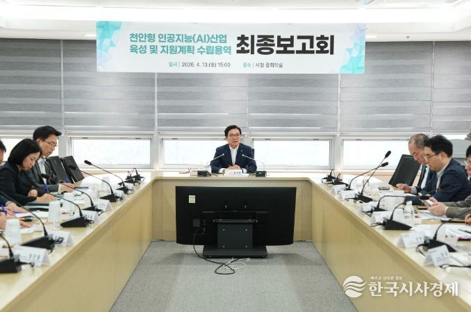 천안시는 13일 시청 중회의실에서 ‘천안형 AI 산업 육성 및 지원계획 수립용역’ 최종보고회를 열고 ‘중부권 AI 산업 거점 도시 도약’을 위한 4대 추진전략을 발표했다.