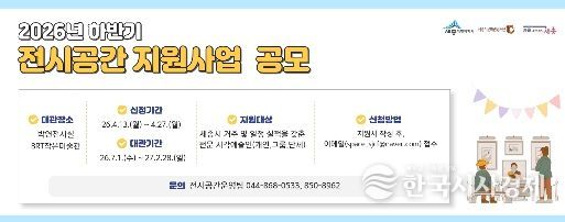 한국시사경제 세종취재분부 | 세종시문화관광재단은 지역 시각예술인의 창작활동을 지원하고 시민들에게 다양한 전시 관람 기회를 제공하기 위해 ‘2026년 하반기 전시공간 지원사업 공모’를 진행한다.