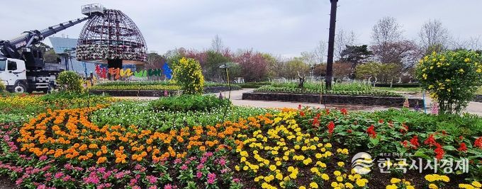 한국시사경제 윤광희 기자 | 전남 함평군이 대한민국 대표 봄 축제인 나비대축제 개막을 앞두고 함평엑스포공원에 대형 꽃탑을 설치해 이목을 끈다.