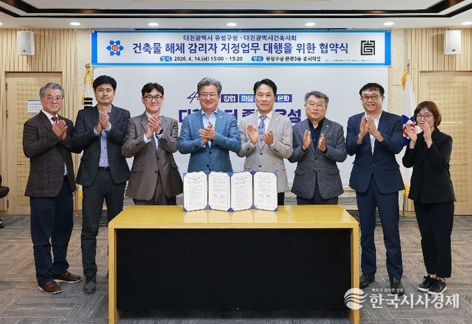 한국시사경제 대전취재본부 | 대전 유성구는 14일 구청 중회의실에서 대전광역시건축사회(회장 조한묵)와 건축물 해체 공사 감리자 선정 업무 대행을 위한 협약을 체결했다.