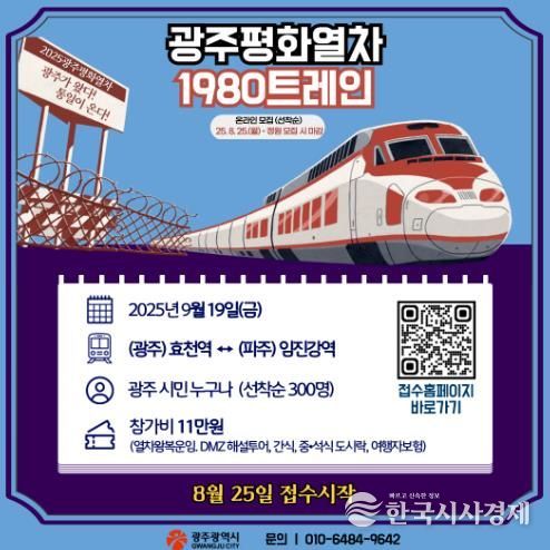 이번 열차에는 총 300명의 시민이 탑승할 예정이며, 참가신청은 25일부터 광주광역시 누리집에서 선착순으로 접수받는다.