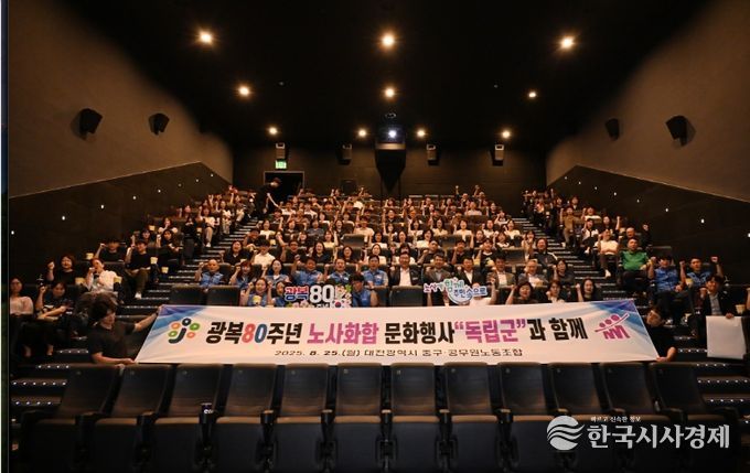 이날 행사는 김제선 중구청장과 이정만 대전 중구 공무원 노조위원장 등 직원 150여 명이 참여했다. 광복 80주년을 맞아 대한민국 독립전쟁사를 다루는 다큐멘터리 영화를 함께 관람하면서 대한민국이 어떤 희생과 헌신 위에 세워졌는지를 되새기고, 공직자로서 함께 나아갈 방향에 대해 논의하고 소통하는 시간을 가졌다.