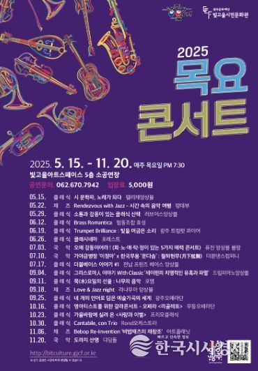 한국시사경제 광주취재본부 | 광주문화재단은 오는 9월 4일, 11일, 18일, 25일 목요일 저녁 7시 30분, 빛고을아트스페이스 5층 소공연장에서 9월의 목요콘서트 무대를 개최한다고 밝혔다.