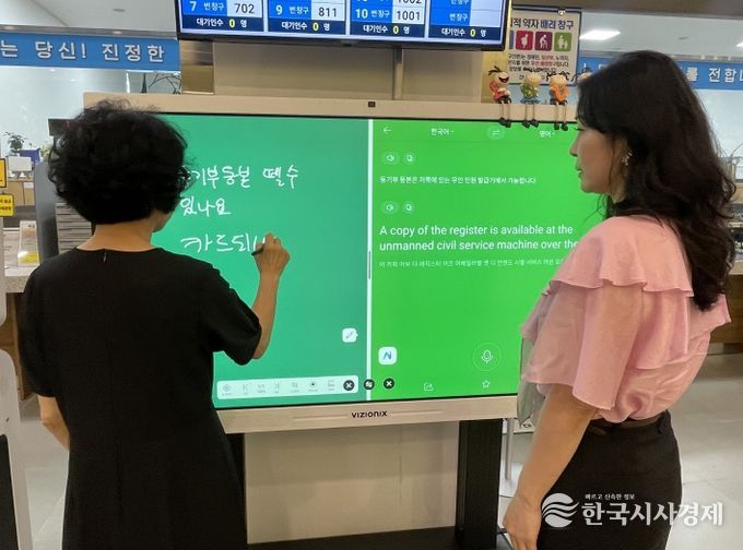 외국인 민원인도 외국어 음성을 입력하면 전자보드를 통해 4개국 언어를 동시통역 서비스를 실시간으로 받을 수 있다.