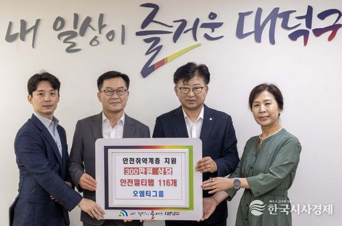 한국시사경제 대전취재본부 | 대전 대덕구는 오엠티그룹(회장 오명탁)으로부터 지역 취약계층 지원을 위한 300만원 상당의 화재 예방 안전멀티탭을 기탁받았다고 27일 밝혔다.