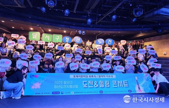 한국시사경제 대구취재본부 | 대구 달서구는 지난 27일 꿈꾸는 씨어터에서 청년도전지원사업 ‘청년도전 힐링콘서트’를 열고, 참여 청년과 지역 주민 등 100여 명과 함께 공연·공감 대화를 통해 청년의 자존감 회복과 새로운 도전을 응원했다.