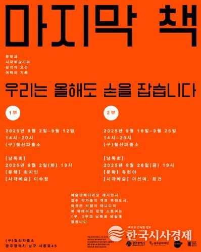 한국시사경제 광주취재본부 | 광주문화재단은 지역문화예술특성화 창작공간프로그램지원 사업 선정 단체인 예술단체 마리모가 입주작가 결과보고전《마지막 책–우리는 올해도 손을 잡습니다》를 오는 9월2일부터 9월26일까지 (구)월산파출소(남구 서동로)에서 개최한다고 밝혔다.