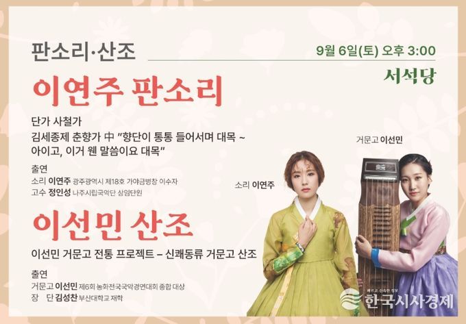한국시사경제 광주취재본부 | 광주문화재단 전통문화관은 오는 9월 6일(토) 오후 3시, 열일곱 번째 토요 상설공연을 선보인다.
