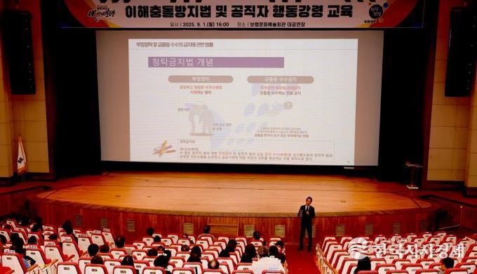 한국시사경제 김태훈 기자 | 보령시는 지난 1일 보령문화예술회관 대공연장에서 전 직원을 대상으로 하반기 공직자 청렴교육을 실시했다고 밝혔다.