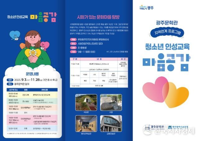 한국시사경제 광주취재본부 | 광주광역시는 지역 청소년들의 문학적 감수성과 창의적 사고를 키우기 위해 광주문학관에서 ‘2025 지역 연계 문학프로그램’을 9월부터 11월까지 3개월간 운영한다.