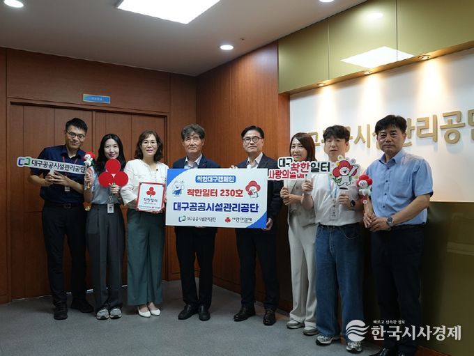 문기봉 대구공공시설관리공단 이사장은 “이번 착한일터 가입은 임직원 모두가 함께 만들어낸 뜻깊은 성과”라며, “앞으로도 지역사회와 상생하며 나눔을 꾸준히 실천해 나가겠다”고 밝혔다.