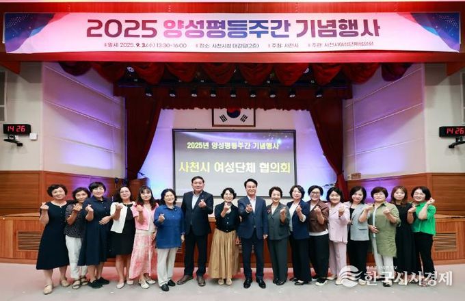 한국시사경제 윤광희 기자 | 사천시는 2025년 양성평등주간(9월 1일~7일)을 맞이해 3일 시청 대강당에서 ‘모두가 존중받는 성평등사회, 모두가 행복한 사천’이라는 주제로 기념행사를 개최했다.