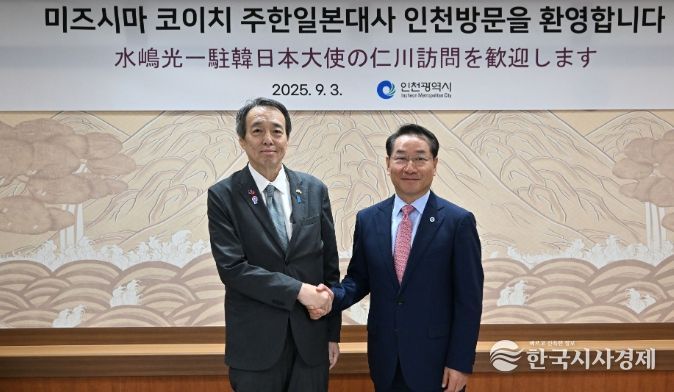 한국시사경제 해외팀 | 인천광역시는 9월 3일 미즈시마 코이치(MIZUSHIMA Koichi, 水嶋光一) 주한일본대사가 유정복 인천시장을 예방했다고 밝혔다.