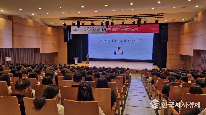 한국시사경제 김태훈 기자 | 논산시는 2일 논산아트센터 대공연장에서 전 직원을 대상으로 ‘2025년 전 직원 적극행정 교육’을 실시했다. 이번 교육은 적극행정에 대한 공직자들의 인식을 제고하고, 행정 혁신 문화를 확산하기 위해 마련됐다.