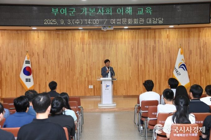 한국시사경제 김태훈 기자 | 부여군은 9월 3일 오후 2시, 여성문화회관 대강당에서 전 직원을 대상으로 ‘기본사회 이해’ 교육을 진행했다.