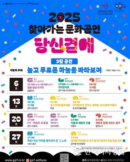 한편, ‘2025년도 찾아가는 문화공연’ 사업은 광주시의 시민 체감형 문화정책 실현의 하나로, 광주예술의전당(전당장 윤영문)과 협력하여 추진된다. 상반기는 4월부터 6월까지 19회 개최됐고, 하반기는 9월부터 12월까지 31회 진행될 예정이다.