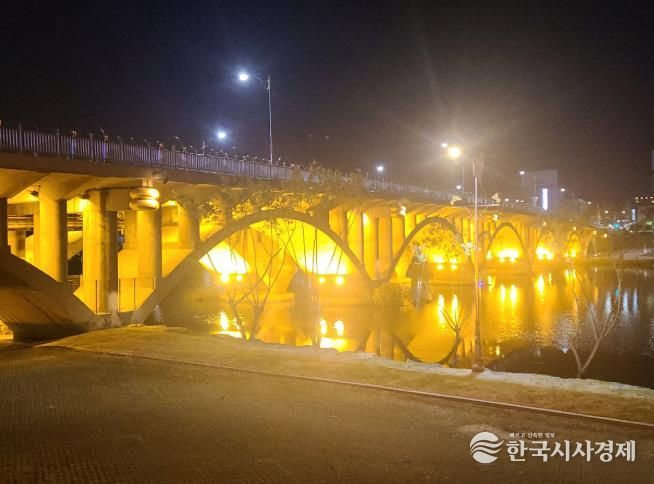 특히 ‘희망교’는 관내 유일의 2단 교량으로, 상부교량과 하부교량의 입체적인 구조를 느낄 수 있는 매력적인 경관조명이 설치돼 있고, 그 하류에 있는 ‘천수교’에는 칠암동 둔치의 경관조명과 연계한 현대적인 감성의 경관조명이 설치돼 운영 중이다.