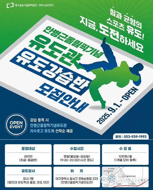 문기봉 대구공공시설관리공단 이사장은 “이번 유도 정규강습반을 통해 시민들이 유도의 진정한 매력을 직접 체험하길 기대한다”며, “앞으로도 생활체육 저변 확대와 안병근올림픽기념유도관 활성화를 위해 지속적으로 노력하겠다”고 말했다.