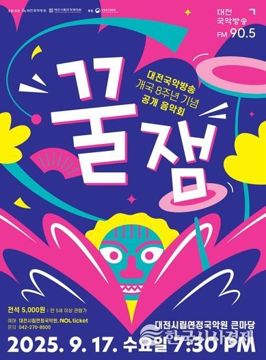 한국시사경제 대전취재본부 | 대전시립연정국악원은 대전국악방송 개국 8주년을 기념해 오는 9월 17일 오후 7시 30분 국악원 큰마당에서 공개 음악회 ‘꿀잼’을 개최한다.