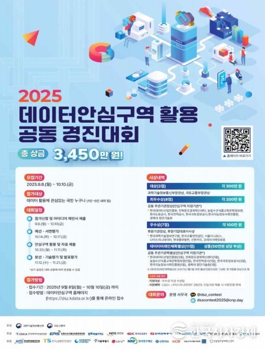 한국시사경제 김숙영 기자 | 과학기술정보통신부와 국토교통부는 ‘2025년 데이터안심구역 활용 공동 경진대회’ 참가신청을 9월 8일부터 10월 10일까지 접수한다.