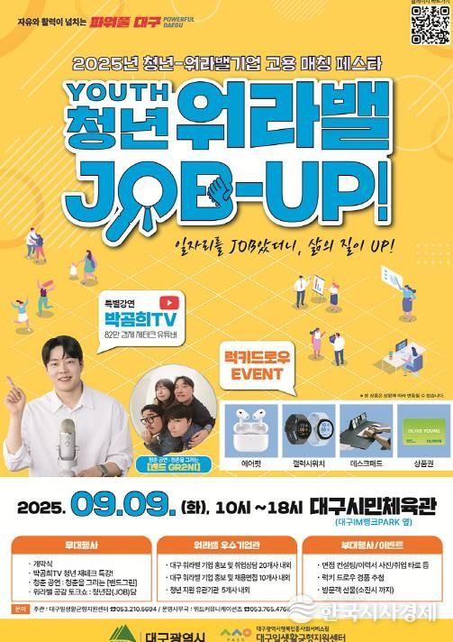 한국시사경제 대구취재본부 | 대구광역시는 9월 9일 오전 10시, 대구시민체육관에서 청년의 지역 정착과 워라밸(Work-Life Balance) 문화 확산을 위한 ‘청년-워라밸기업 고용 매칭 페스타’를 개최한다.