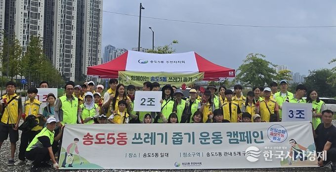 한국시사경제 윤광희 기자 | 연수구 송도5동 주민자치회(회장 채한진)는 지난 6일 지역 주민들과 함께 쾌적하고 살기 좋은 마을 조성을 위한 환경정화 캠페인 ‘쓰담쓰담 송도5동 줍깅’을 실시했다.