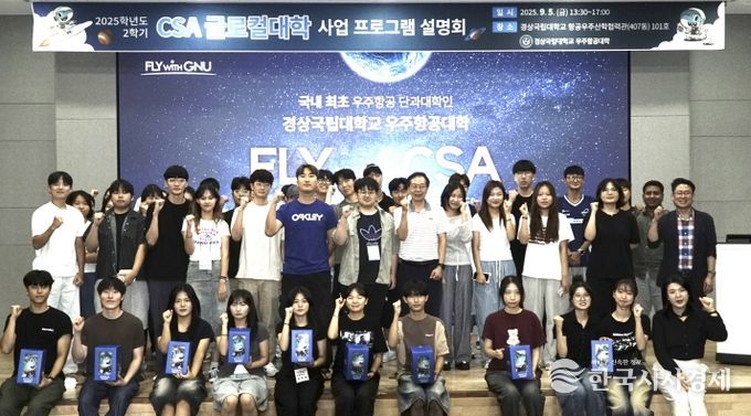 한국시사경제 김숙영 기자 | 경상국립대학교 우주항공대학은 9월 5일 가좌캠퍼스 항공우주산학협력관(407동) 대강당에서 재학생과 학부모 등 80여 명이 참석한 가운데 ‘2025학년도 2학기 CSA 글로컬대학사업 프로그램 설명회’를 개최했다.