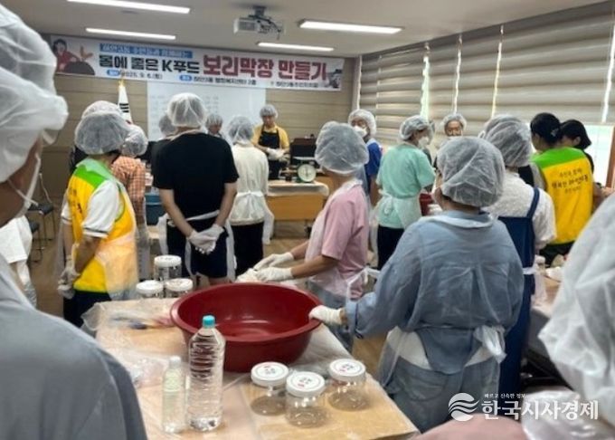 한국시사경제 경기취재본부 | 광명시 하안3동 주민자치회는 지난 6일 지역주민 30명과 함께 하안3동 행정복지센터 2층에서 ‘전통 보리막장 만들기 체험’을 진행했다.