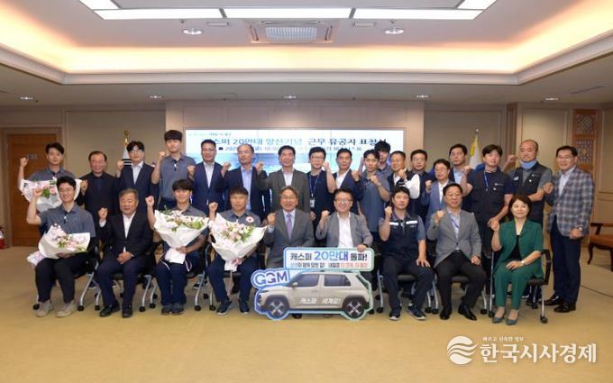 광주광역시는 8일 오전 10시30분 시청 비즈니스룸에서 ‘캐스퍼 20만대 양산 기념 근무유공자 표창 수여식’을 열어 GGM 임직원들의 노고를 격려했다.