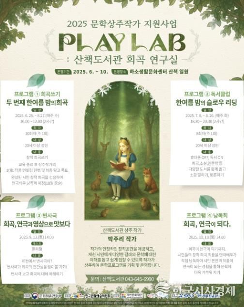 한국시사경제 충북취재본부 | 제천문화재단이 오는 13일 산책도서관에서'2025년 문학상주작가 지원사업'의 세 번째 프로그램으로 '희곡, 연극과 영상으로 맛보다'를 진행한다.