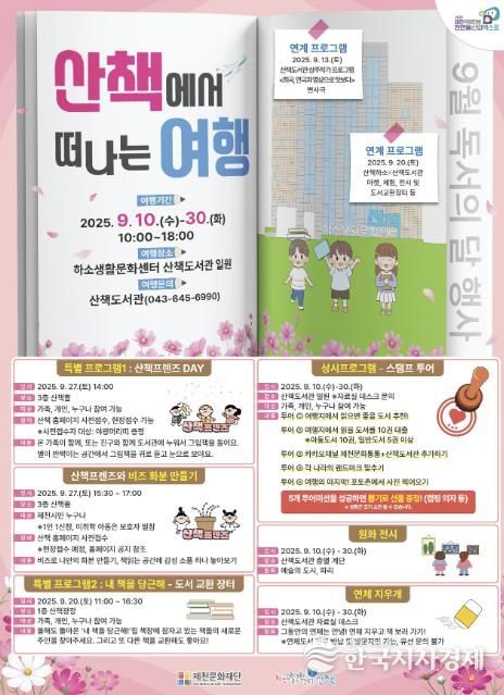 한국시사경제 충북취재본부 | 제천문화재단은 9월 ‘독서의 달’을 맞이해 오는 10일부터 30일까지 산책도서관에서 다채로운 독서문화 프로그램을 운영한다.