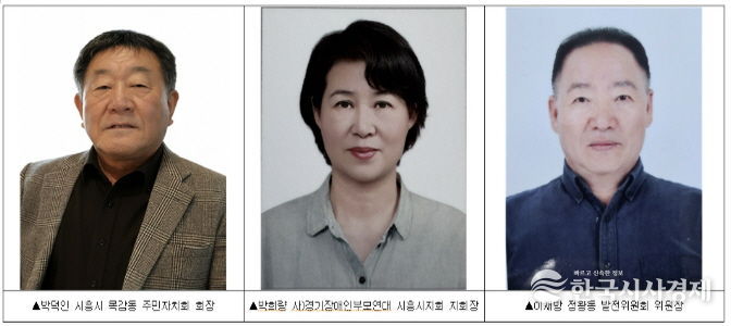 한국시사경제 경기취재본부 | 시흥시가 2025년 시민대상 수상자로 ‘박덕인(시흥시 목감동 주민자치회 회장), 박희량(사)경기장애인부모연대 시흥시지회 지회장), 이재방(정왕동 발전위원회 위원장)’ 3인을 선정했다(가나다 순).
