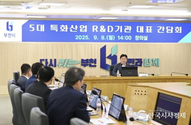 한국시사경제 경기취재본부 | 부천시는 지난 8일 부천시청에서 금형, 조명, 로봇, 패키징, 세라믹 등 5대 특화산업 관련 연구개발(R·D)기관 대표들과 부천산업진흥원장이 참석한 가운데 ‘5대 특화산업 R·D 기관 대표 간담회’를 열었다.