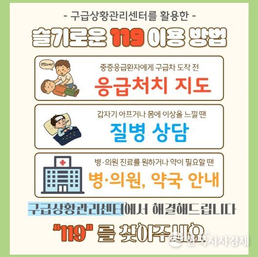 119구급상황관리센터는 연중무휴 24시간 운영되며, 중증 응급환자발생 시 구급차가 도착하기 전 필요한 응급처치 안내해 ‘골든타임’을 확보하는 데 중요한 역할을 하고 있다. 또한, 갑작스러운 통증이나 신체 이상 시 질병 상담을 지원하고, 병·의원 및 약국 위치 안내 서비스를 통해 시민들이 빠르고 정확하게 의료 서비스를 받을 수 있도록 지원한다.