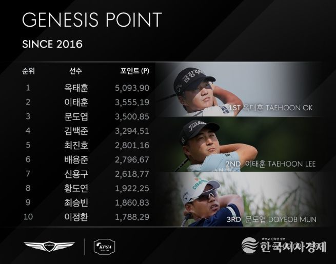 다음 달 23일부터 26일까지는 충남 천안 소재 우정힐스CC에서 KPGA 투어와 DP월드투어 공동주관 대회인 ‘제네시스 챔피언십’이 열린다. ‘제네시스 챔피언십’에는 ‘제네시스 챔피언십’ 직전 대회 종료 기준 제네시스 포인트 상위 36명의 선수가 출전 자격을 얻는다.