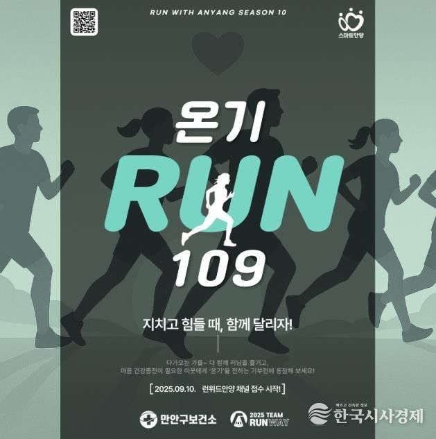 한국시사경제 경기취재본부 | 안양시는 건강달리기와 마음건강 캠페인 활동을 결합한 ‘런위드안양 시즌10 [온기-RUN 109]’프로젝트 참가자를 ‘세계자살예방의 날’인 10일부터 오는 19일까지 접수한다.
