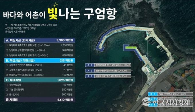 또한 2025년도 해양수산부 공모에 선정된 구엄항 어촌신활력증진사업(유형3)에는 앞으로 3년간 46억 1천만 원이 투입된다. 주요 사업은 북방파제 외측 TTP 설치, 남방파제 연장 및 외측 TTP 설치, 구엄포구 안전펜스 및 야간 경관조명 설치, 마을안길 안전 바닥등 설치 등이다.