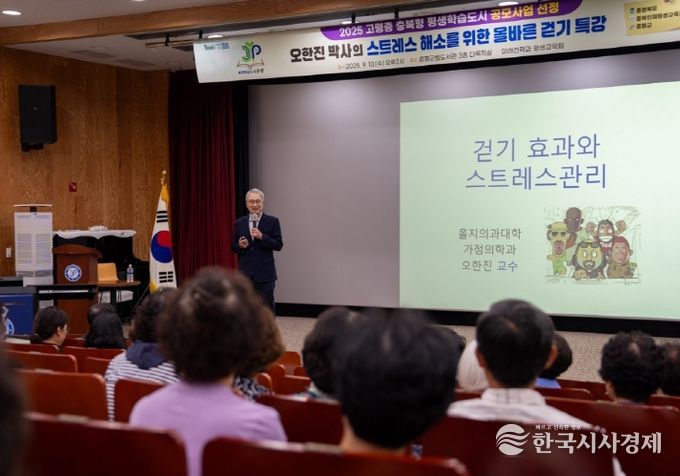 한국시사경제 충북취재본부 | 충북 증평군이 10일 군립도서관에서 가정의학과 전문의이자 방송인인 ‘국민주치의’ 오한진 박사와 함께하는 건강 특강을 열었다.