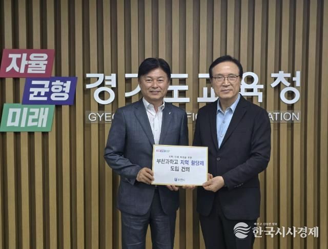 한국시사경제 경기취재본부 | 조용익 부천시장은 10일 임태희 경기도교육감을 만나 부천 과학고등학교 입학생의 50%를 관내 학생으로 선발하는 지역 할당제 도입을 공식 건의했다. 이 자리에는 부천에 지역구를 두고 있는 서영석(부천시갑)·김기표(부천시을)·이건태(부천시병) 국회의원도 함께 참석했다.