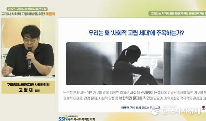 행사는 ‘사회적 고립이 뇌에 미치는 위험성’을 주제로 한 기조강연으로 문을 열었다. 이어 △구미시 사회적 고립 및 고독사 예방사업 △장애인의 사회적 고립 해소 방안 △정신건강복지센터의 자살예방사업 △재가노인 복지의 예방적 실천 △지역사회보장협의체의 따뜻한 동네 만들기 △민관 협력 기반의 지역 안전망 구축 등 분야별 발표가 이어졌다. 발표자들은 사회적 고립이 단순한 개인 문제가 아니라 지역 공동체 전체에 파급효과를 미칠 수 있음을 강조하며, 예방적 접근의 필요성을 공통적으로 제기했다.
