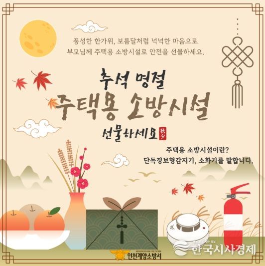 한국시사경제 오영주 기자 | 계양소방서는 추석 명절을 앞두고 화재로부터 안전한 명절을 보내기 위해 ‘주택용 소방시설 선물하기’를 홍보한다고 3일 밝혔다.