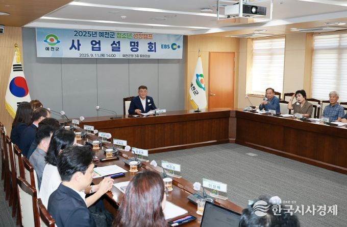 한국시사경제 한장선 객원기자 | 예천군은 9월 11일 예천군청 중회의실에서 한국교육방송공사(EBS)와 공동으로 ‘2025년 청소년 성장캠프 사업설명회’를 열었다.