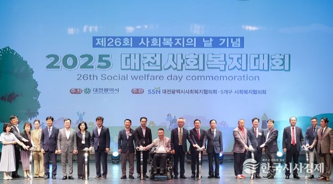 한국시사경제 대전취재본부 | 대전광역시사회복지협의회(회장 김현채)는 9월 11일 오후 평송청소년문화센터에서 '2025 대전사회복지대회'를 개최했다. 이번 행사는 제26회 사회복지의 날을 기념해 사회복지 유관기관과 단체 관계자, 시민 등 500여 명이 참석한 가운데 진행됐다. 이날 행사에는 이장우 대전시장을 비롯해 시의회, 교육청 등 주요 인사들이 함께해 지역 복지인들의 노고를 격려했다.