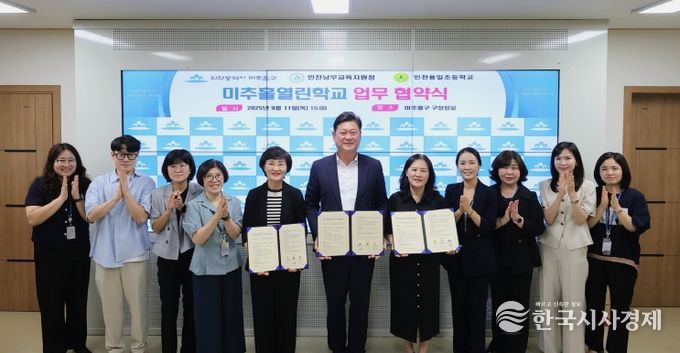 한국시사경제 윤광희 기자 | 인천 미추홀구는 11일 구청장실에서 인천남부교육지원청, 인천용일초등학교(교장 김수경)와 함께 용일초 다목적 강당 주민개방을 위한 ‘미추홀열린학교 업무협약’을 체결했다.